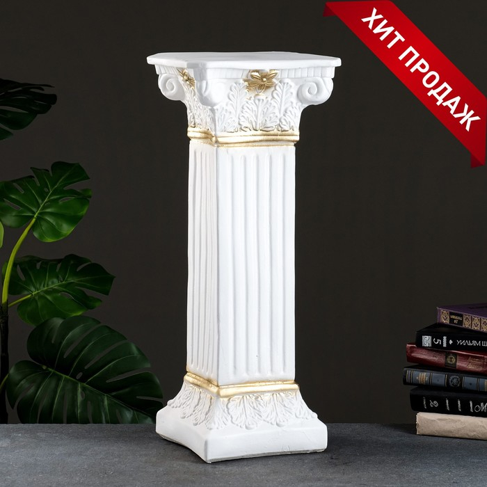 Колонна декоративная «Античная», гипс, бело-золотой, 64×25.5 см
