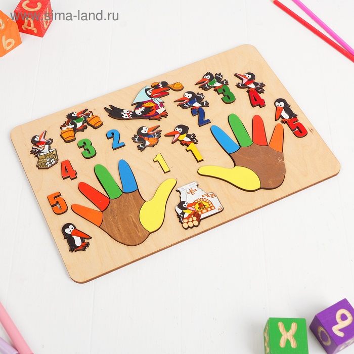 Бизиборд поможет вам в игровой форме обучить малыша счёту, познакомить с понятиями «левый» и «правый». Также кроха узнает названия всех пальчиков. А весёлые фигурки птенцов позволят ярко преподнести потешку про сороку-белобоку.