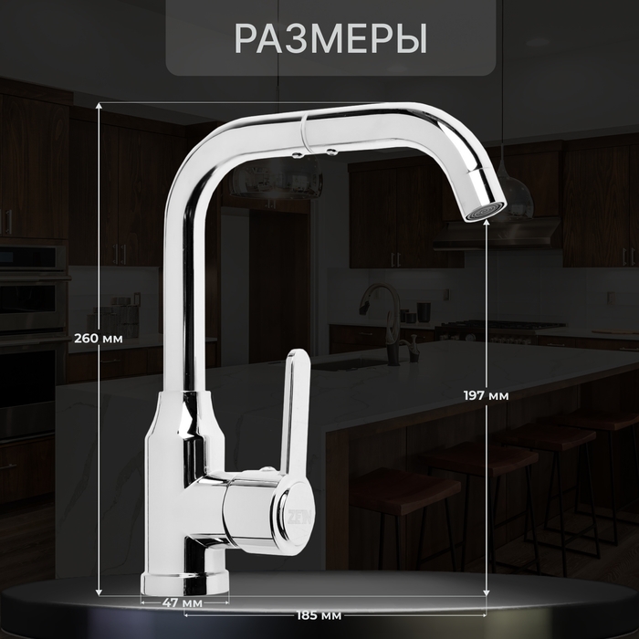 Смеситель для кухни ZEIN Z1300, однорычажный, выдвижной излив, латунь, цвет хром