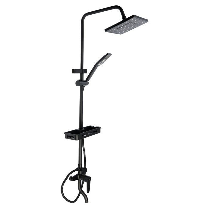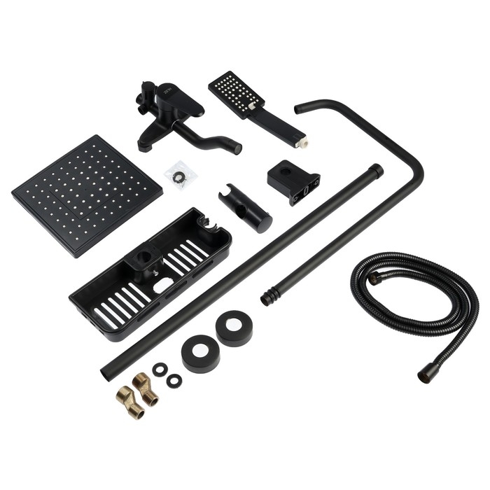 Душевая система ZEIN Z3862, смеситель, тропическая и ручная лейка, полка, латунь, черная