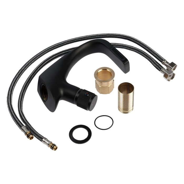 Смеситель для раковины ZEIN Z3877, однорычажный, интерьерный, высота 16 см, латунь, черный