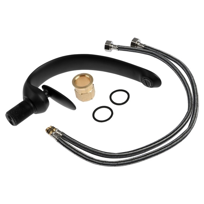 Смеситель для раковины ZEIN Ретро высокий каскадный излив, без подводки, латунь, цвет черный