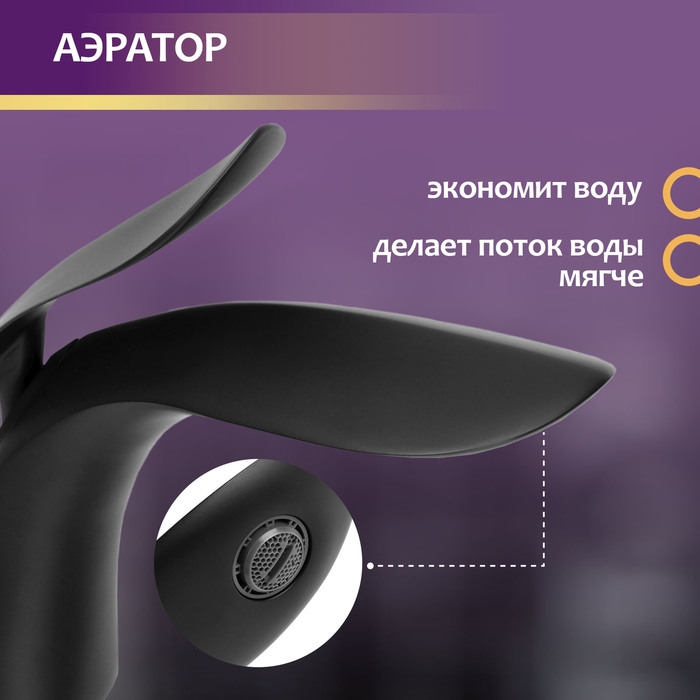Смеситель для раковины ZEIN Ретро высокий каскадный излив, без подводки, латунь, цвет черный