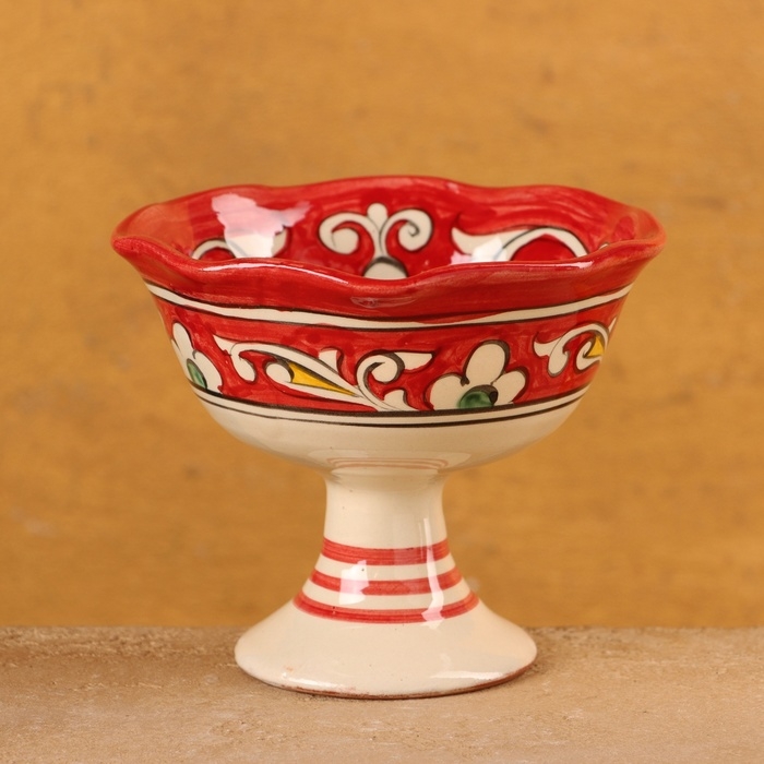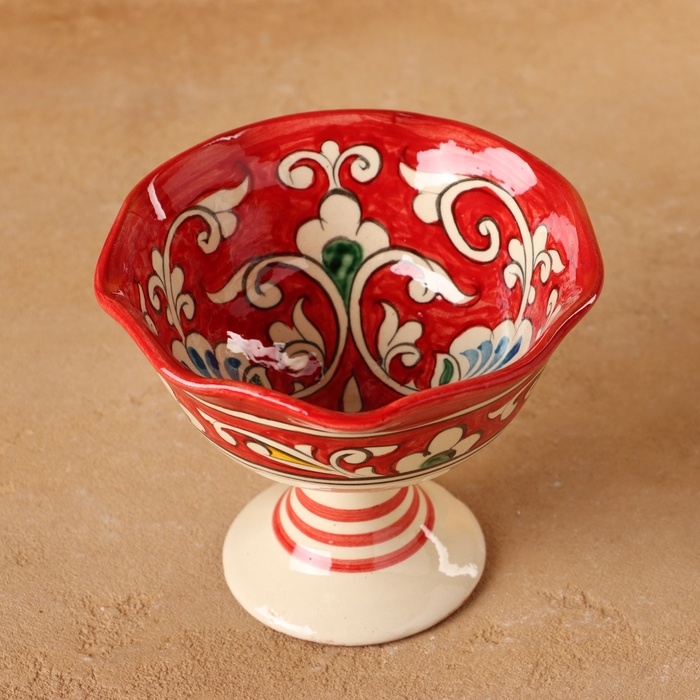 Конфетница Риштанская Керамика "Цветы", красная 12 см,