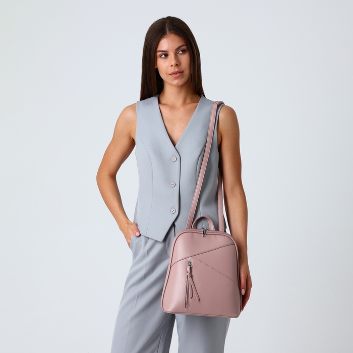 Рюкзак городской из искусственной кожи на молнии, цвет розовый