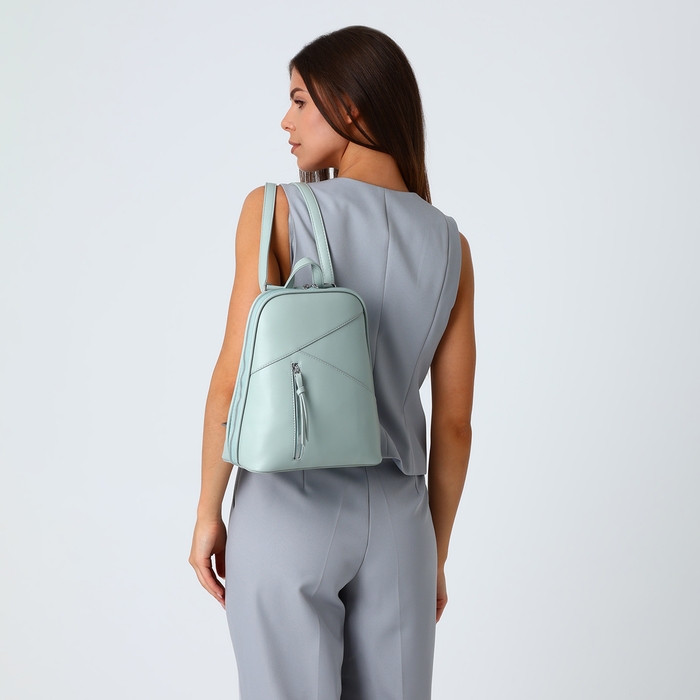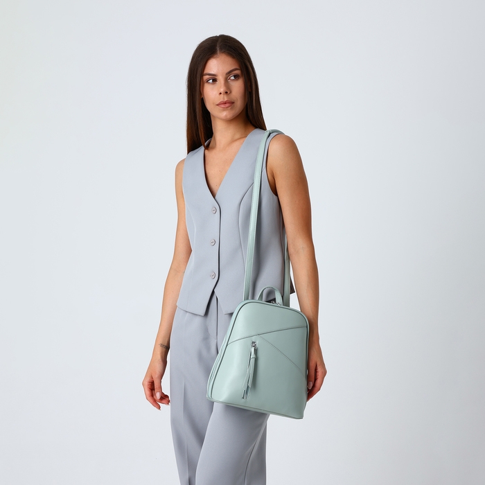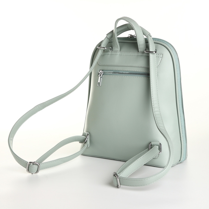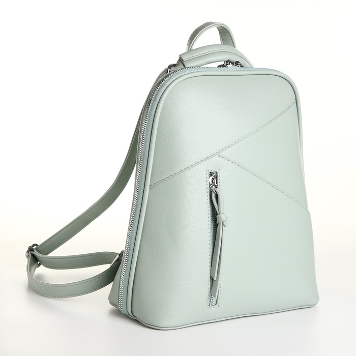 Рюкзак городской из искусственной кожи на молнии, цвет зелёный