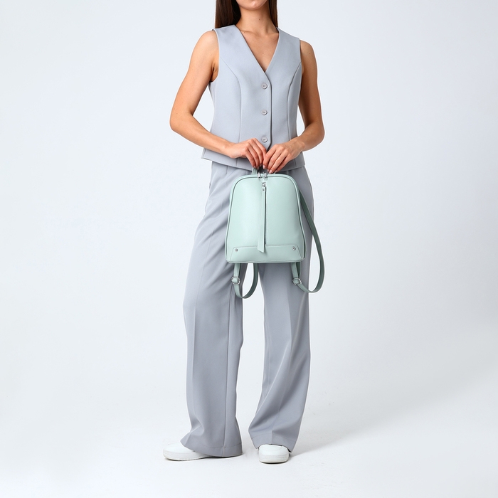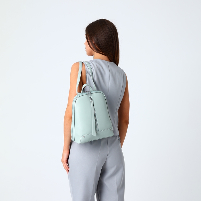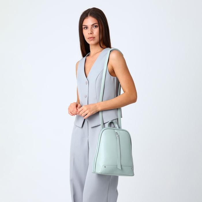 Рюкзак городской из искусственной кожи на молнии, цвет зелёный