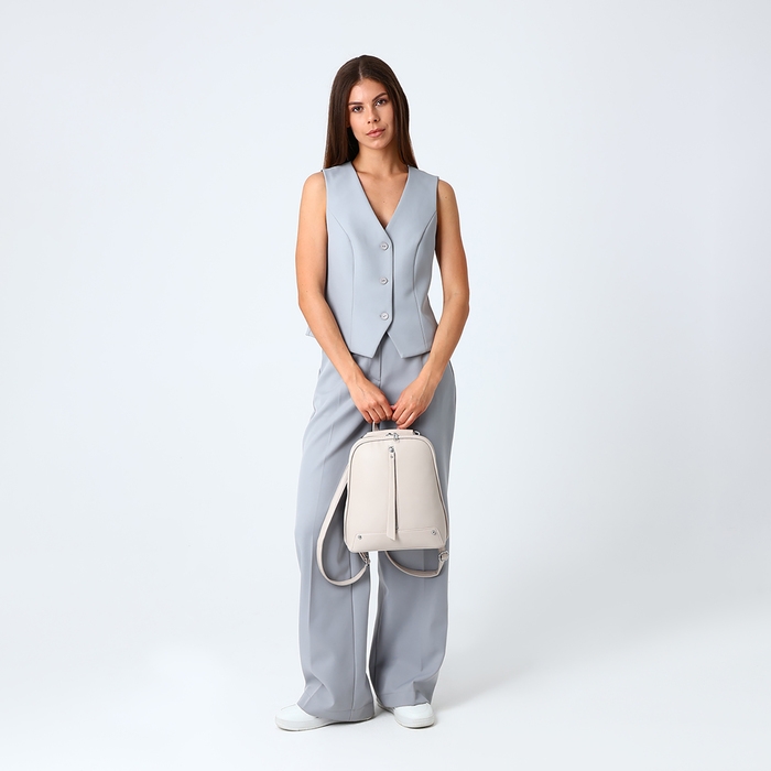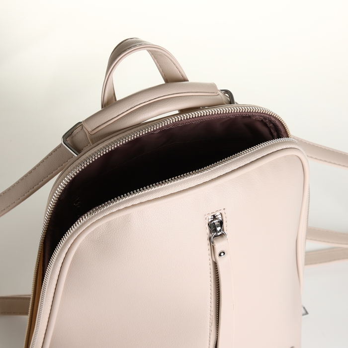 Рюкзак городской из искусственной кожи на молнии, цвет бежевый