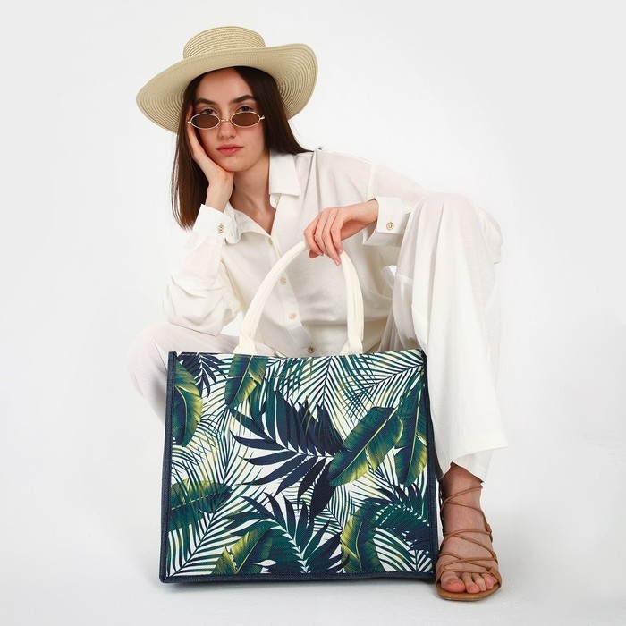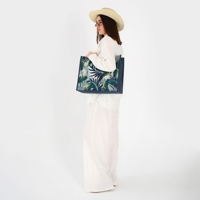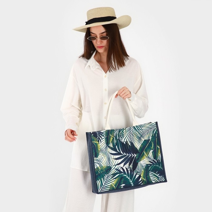 Сумка женская пляжная Тропики, 41,5х34х12 см, зелёный цвет