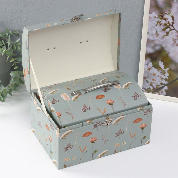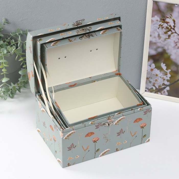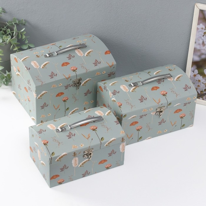 Шкатулка картон сундучок "Цветочный рисунок" набор 3 шт 26х18х16,5 24х16х14,5 22х14х12,7 см 102356