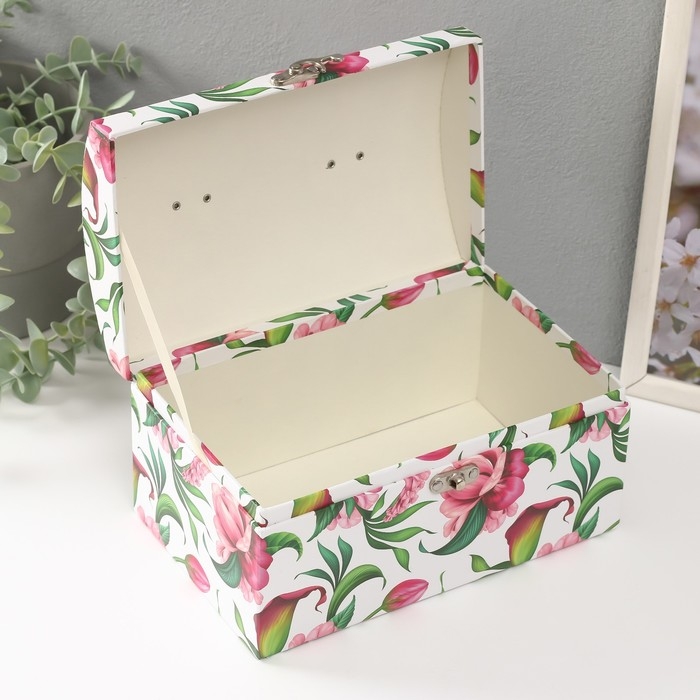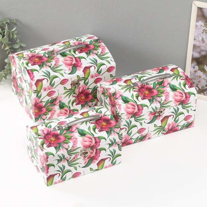 Шкатулка картон сундучок "Яркие цветы" набор 3 шт 26х18х16,5 24х16х14,5 22х14х12,7 см