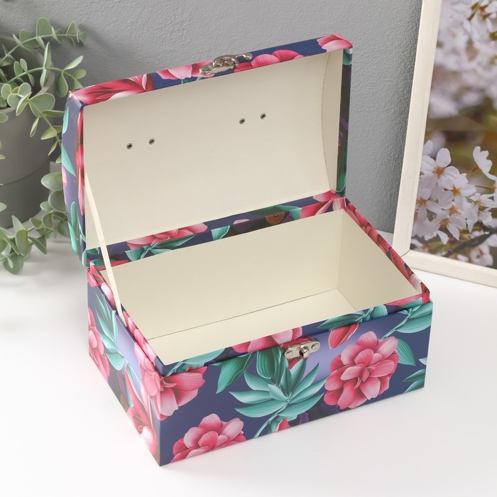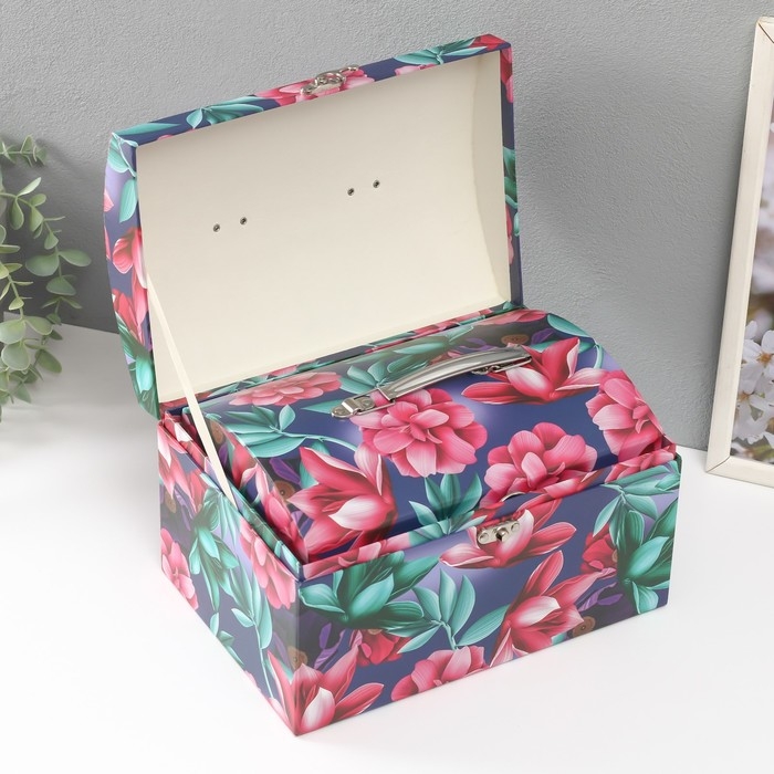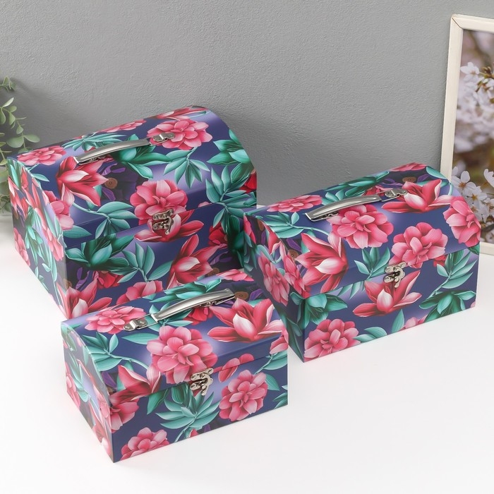 Шкатулка картон сундучок "Волшебные цветы" набор 3 шт 26х18х16,5 24х16х14,5 22х14х12,7 см