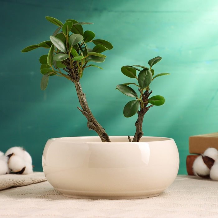 Кашпо - бонсай "Мира" для кактусов и суккулентов, белое, 18х18х7см