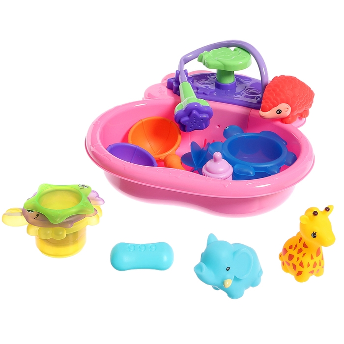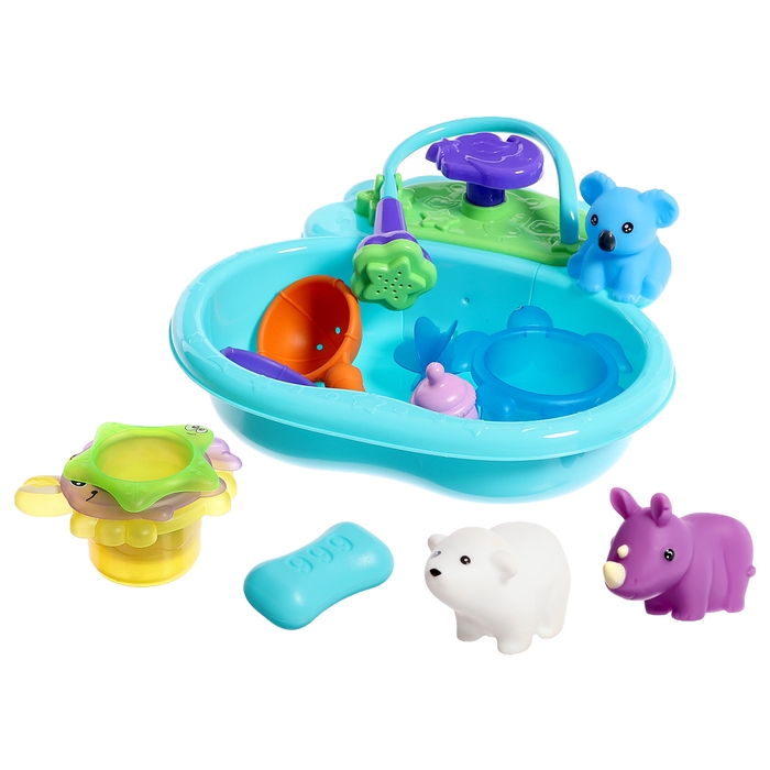 Набор игрушек для купания с ванночкой «Купание зверят», 12 предметов, МИКС