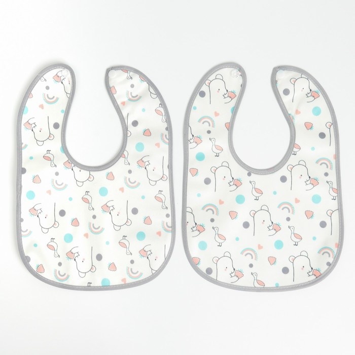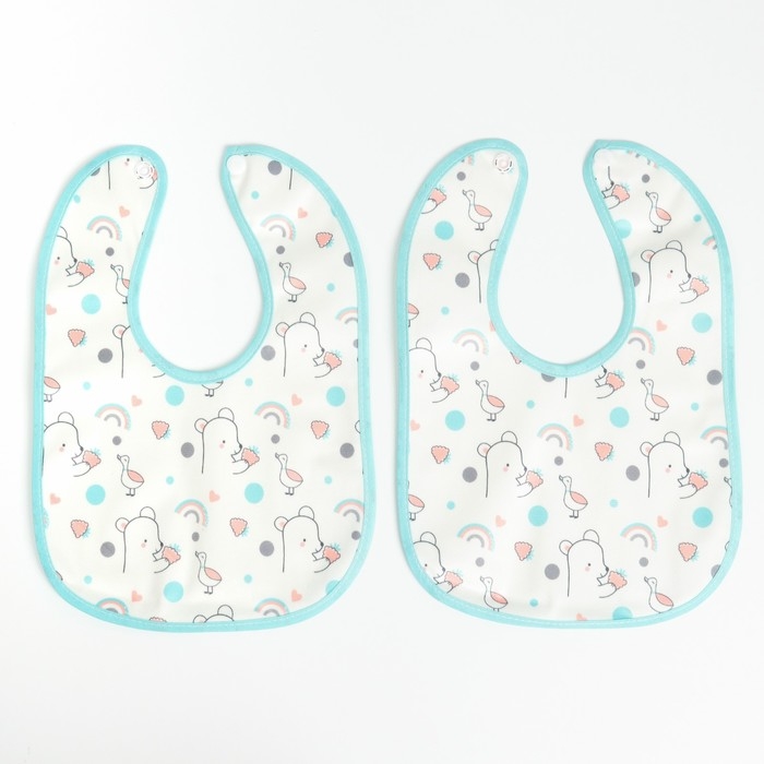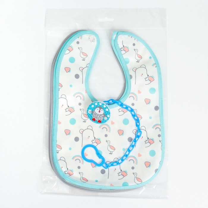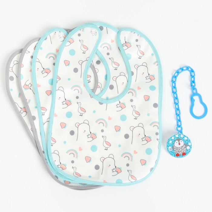 Набор детских слюнявчиков Крошка Я, 4 шт. + подарок, 29х20 см., цвет бирюзовый, серый