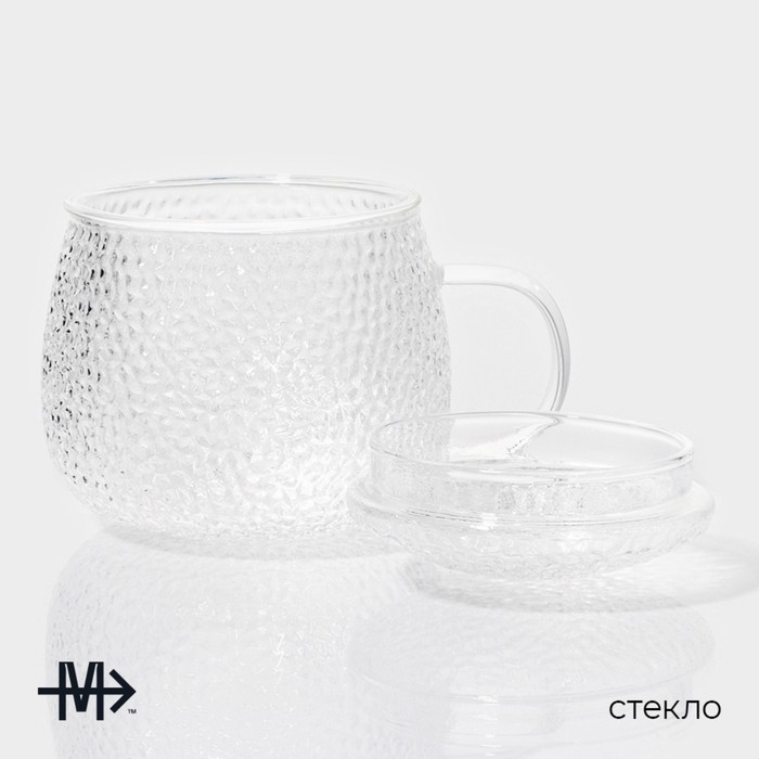 Кружка стеклянная для заваривания Magistro «Сара» с крышкой, 360 мл, 12×9×10,1 см, сито