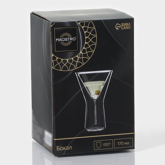 Бокал из стекла для мартини с двойными стенками Magistro «Айс», 170 мл, 10,3×15,7 см