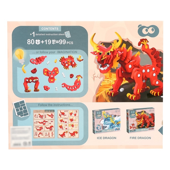 Конструктор «Огненный дракон», мягкий, материал EVA, 99 деталей