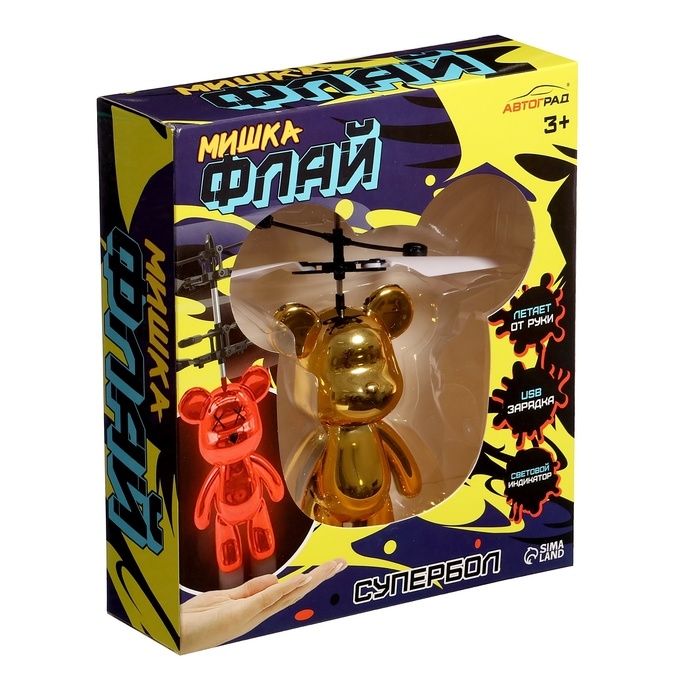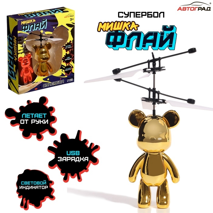 Супербол «Мишка Флай», летает, работает от аккумулятора, цвет золотой