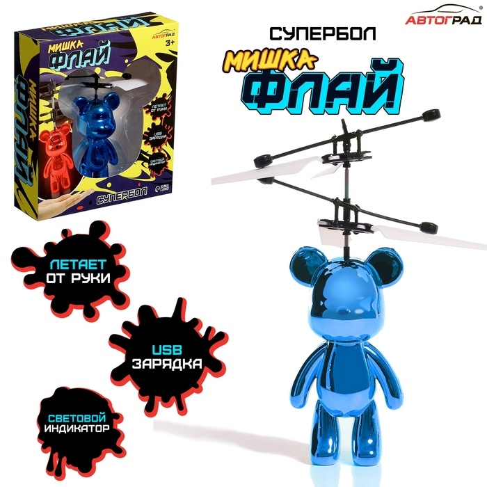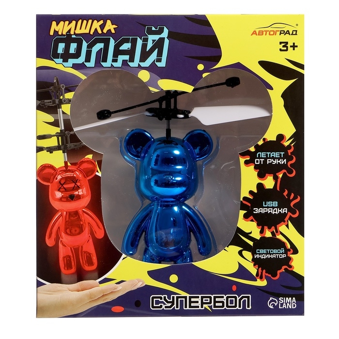 Супербол «Мишка Флай» — летающая игрушка, которая удивит любого ребёнка! Управление очень простое: игрушка взлетает от соприкосновения с твёрдой поверхностью. Внутри неё установлен сенсор, он срабатывает при касании игрушки с рукой или полом.