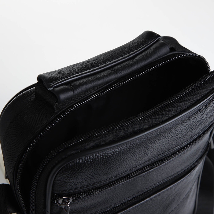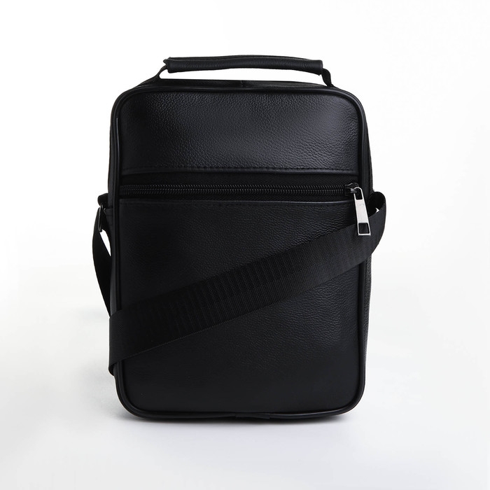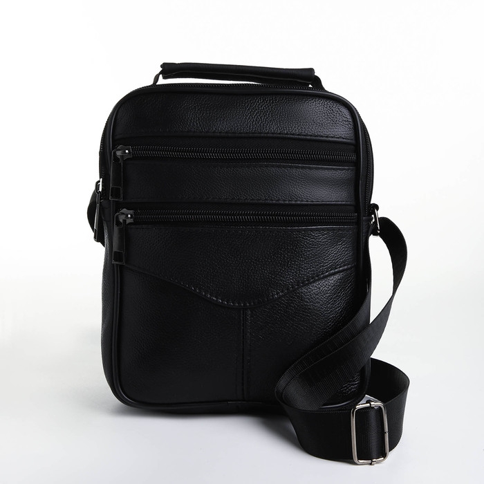 Сумка мужская на молниях, длинный ремень, цвет чёрный
