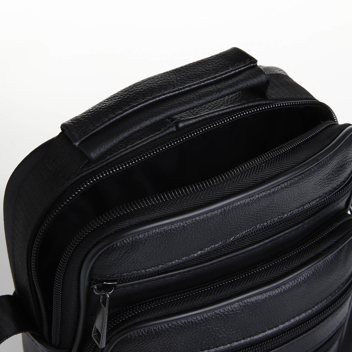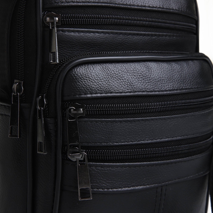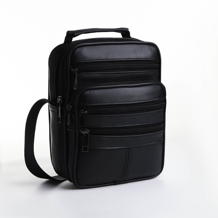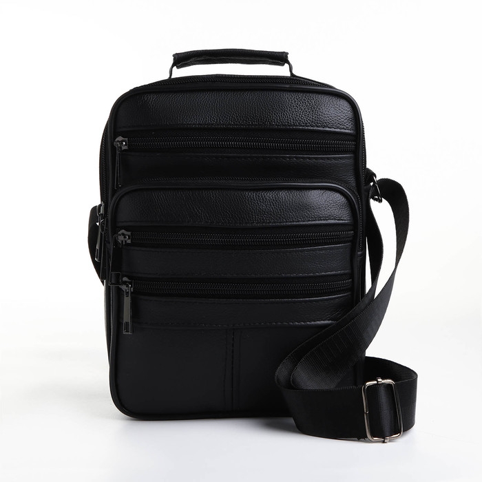 Сумка мужская на молниях, длинный ремень, цвет чёрный