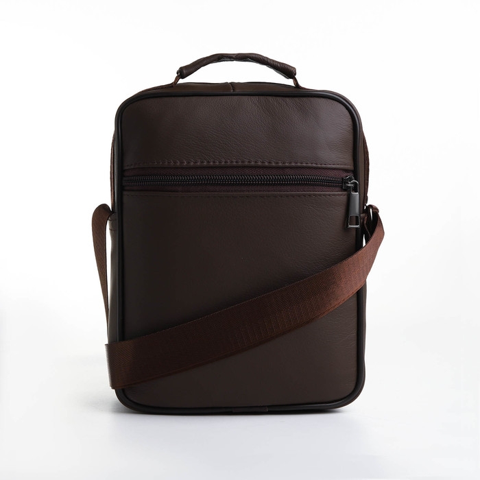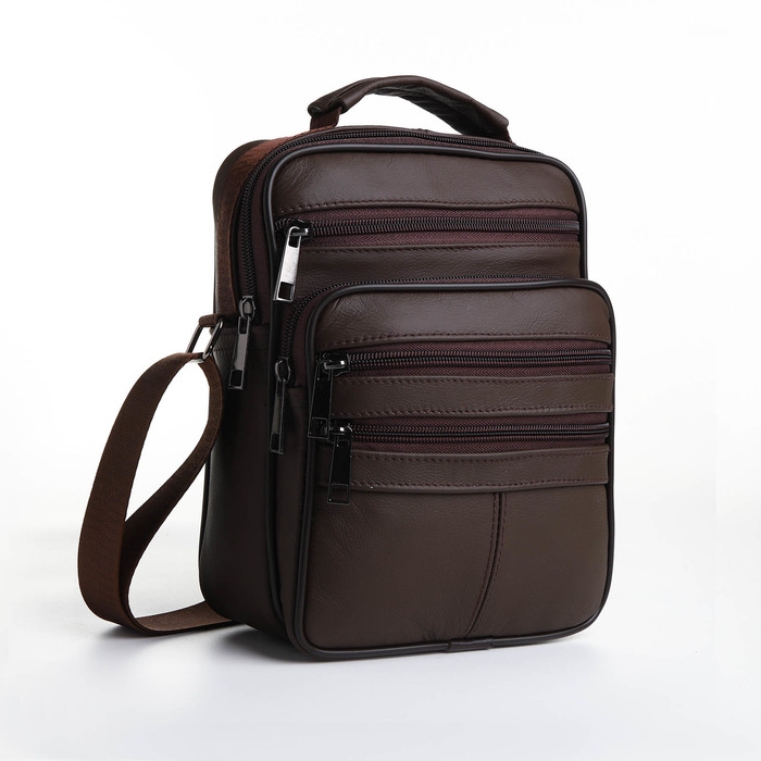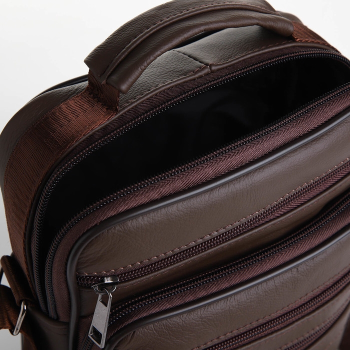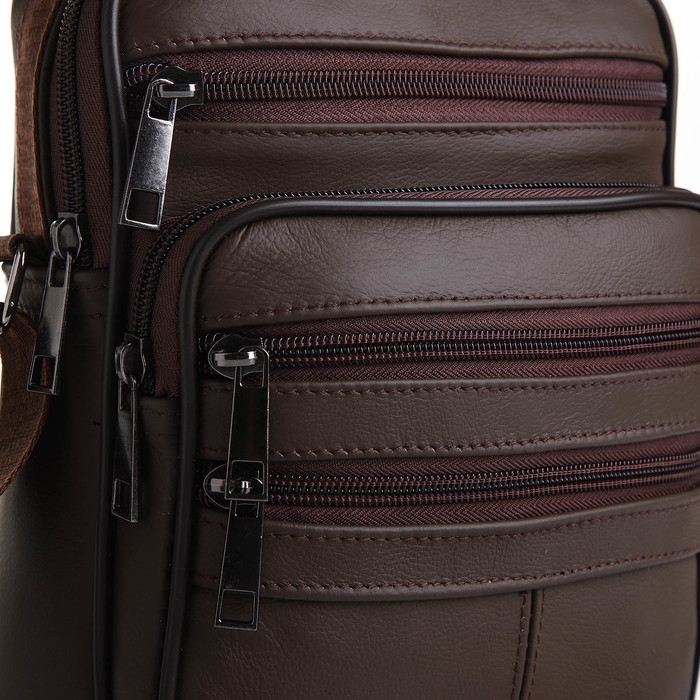 Сумка мужская на молниях, длинный ремень, цвет коричневый