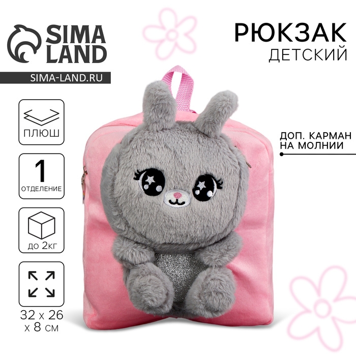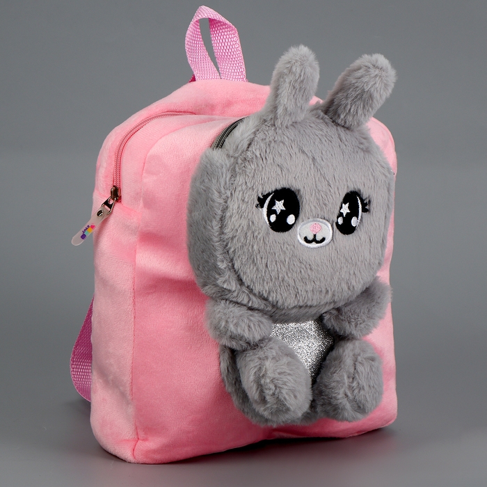 Рюкзак детский плюшевый для девочки «Зайка», цвет розовый