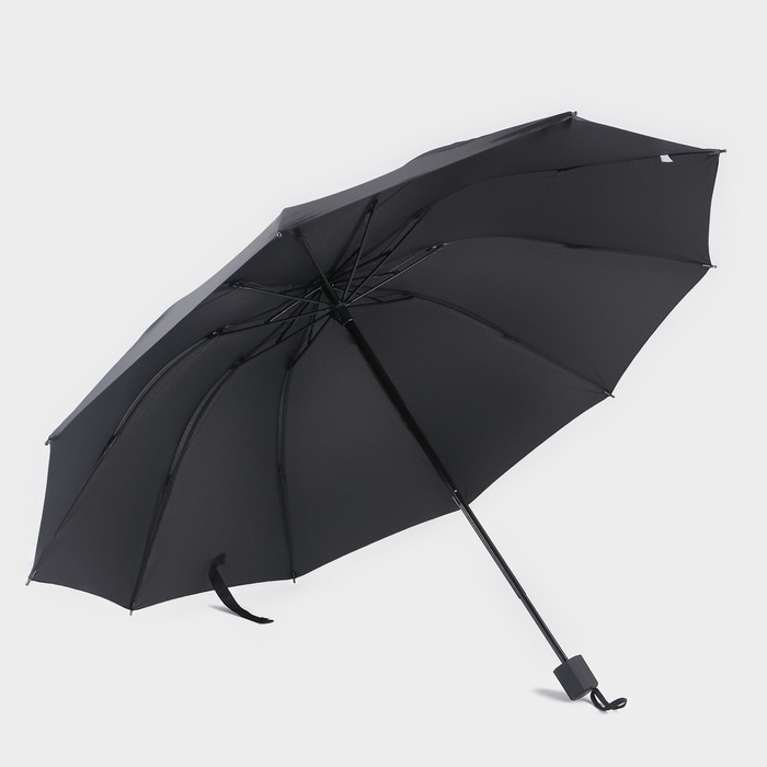 Зонт механический «Однотон», эпонж, 4 сложения, 10 спиц, R = 53/62 см, D = 124 см, цвет чёрный