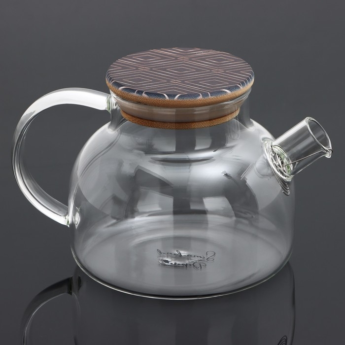 Чайник стеклянный заварочный с бамбуковой крышкой «Геометрия», 600 мл