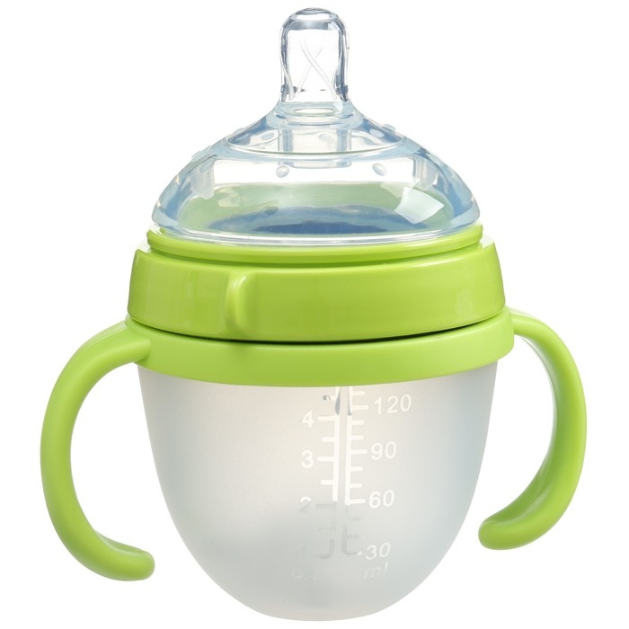 Бутылочка для кормления M&B, ШГ Ø70мм, 150мл., с ручками, силиконовая колба, цвет зеленый