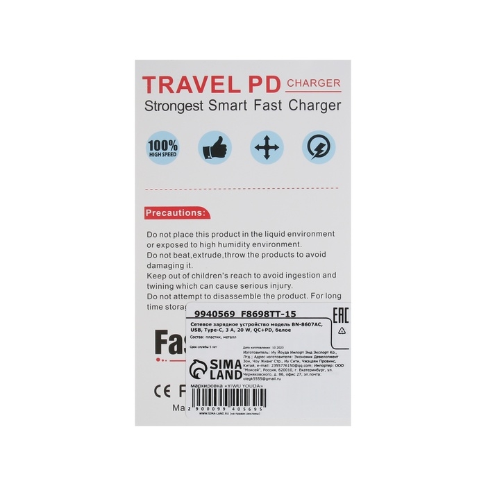 Сетевое зарядное устройство GQ-5, USB, Type-C, 3 A, 20 W, QC+PD, белое