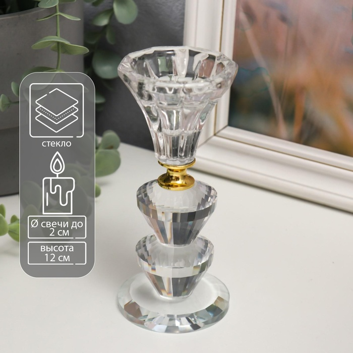 Подсвечник стекло на 1 свечу "Вазон с хрусталиками" 12х5,6х5,6 см