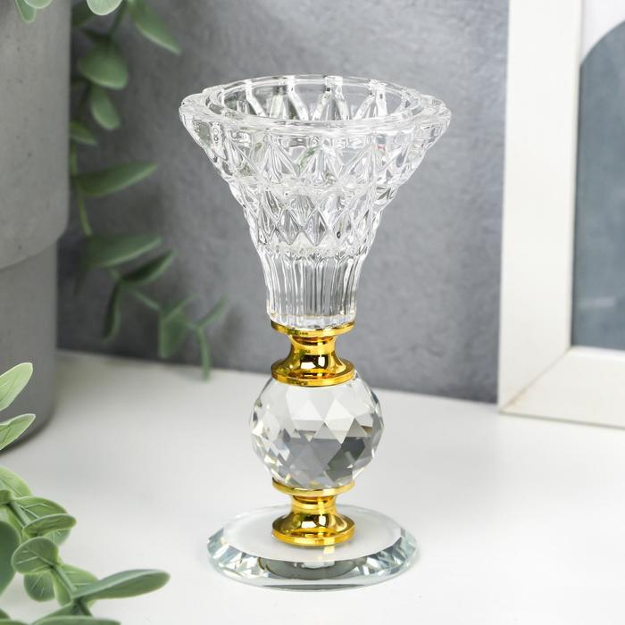 Подсвечник стекло на 1 свечу "Вазон с хрустальным шаром" 11х6х6 см