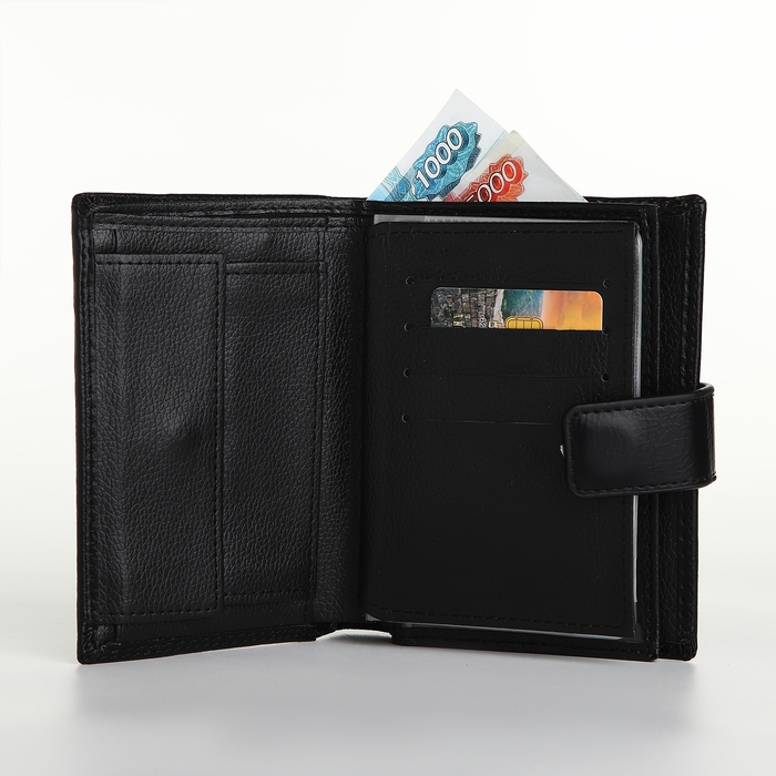 Портмоне мужское на магните 3 в 1, отдел для автодокументов, паспорта, цвет чёрный