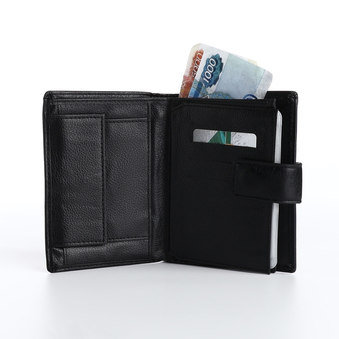Портмоне мужское на магните 3 в 1, отдел для автодокументов, паспорта, цвет чёрный
