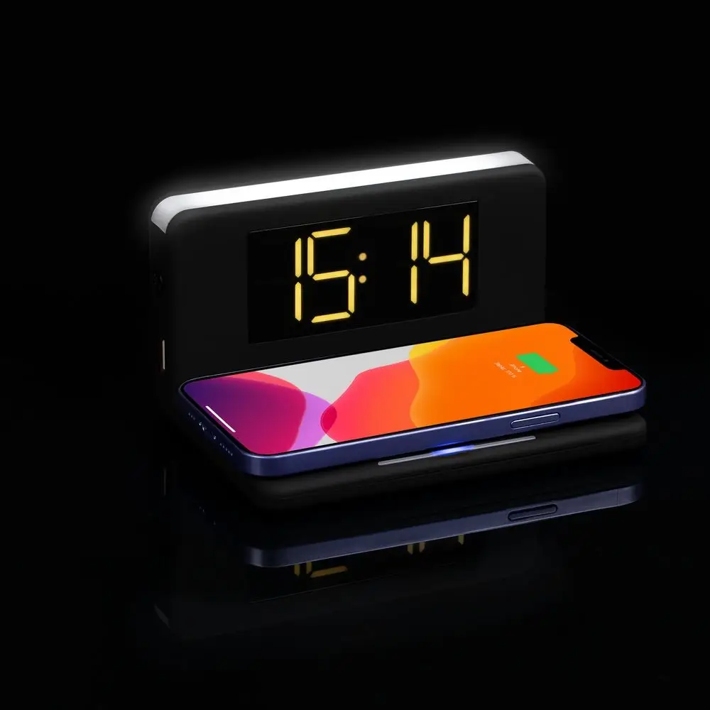 Pitstop — многофункциональное устройство, которое сочетает в себе функции настольных часов, будильника, станции для беспроводной и проводной зарядки устройств и ночника.