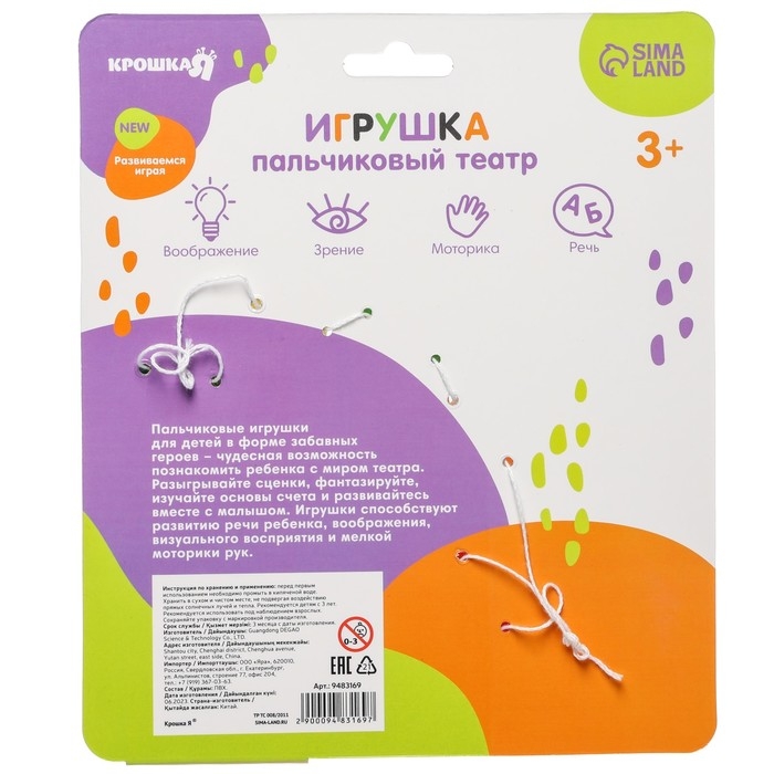 Качество товара подтверждается сертификатом соответствия ЕАС. Предназначено для детей с 3 лет.