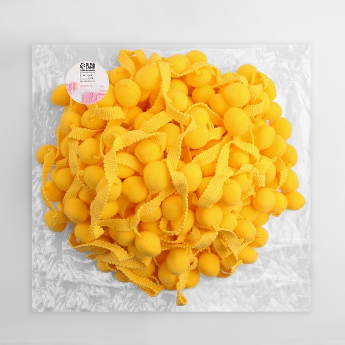 Тесьма декоративная с помпонами, 35 ± 5 мм, 9,1 ± 0,5 м, цвет жёлтый