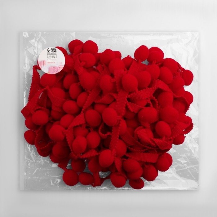 Тесьма декоративная с помпонами, 35 ± 5 мм, 9,1 ± 0,5 м, цвет красный