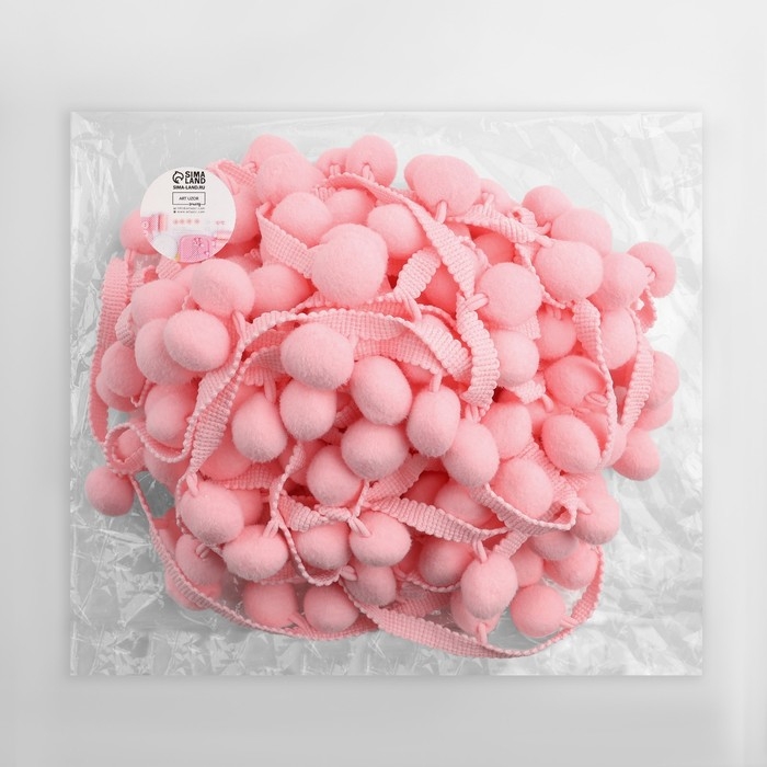 Тесьма декоративная с помпонами, 35 ± 5 мм, 9,1 ± 0,5 м, цвет розовый