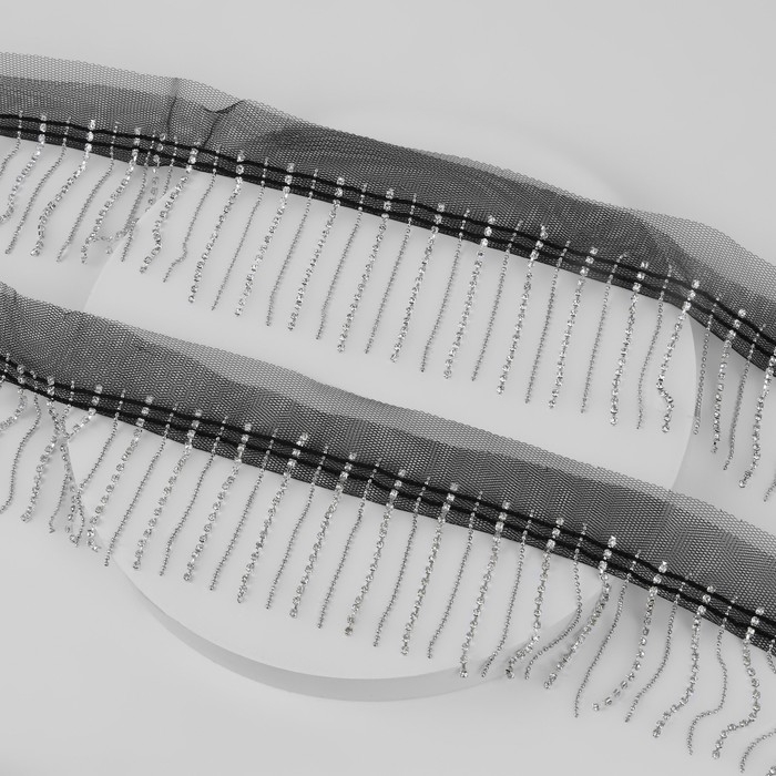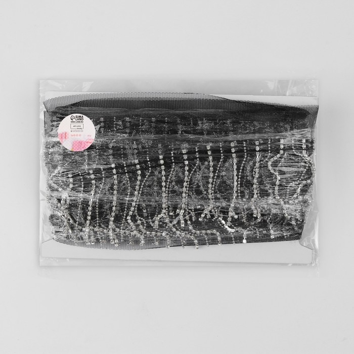 Тесьма декоративная «Бахрома», металлизированная, 6 см, 4,5 ± 0,5 м, цвет чёрный/серебряный