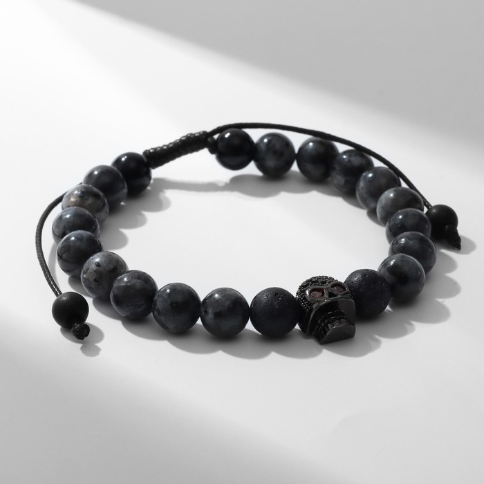 Браслет мужской «Череп» с бусинами на нити, цвет серый