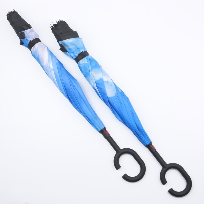 Необычный зонт будет Вашим верным помощником в дождливю погоду. Система данного зонта - механическая. От других моделей отличается механизмом обратного сложения. Зонт закрывается мокрой сторой внутрь. Конструкция задерживает воду в себе. При необходимости Вы легко сможете убрать зонт в сумку или на сидение автомобиля. Мокрых следов не останется! Купол зонта состоит из полиэстра. Потрясающая ручка удобно лежит в руке.