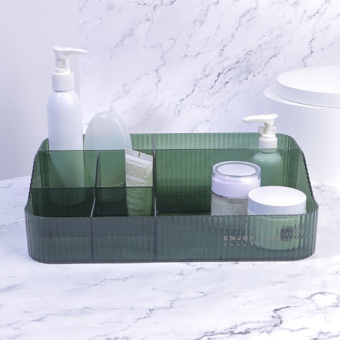 Органайзер для хранения маникюрных/косметических принадлежностей «GREEN», 7 секций, 30 × 20 × 8 см, цвет полупрозрачный/зелёный