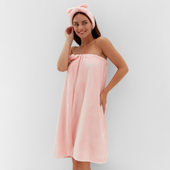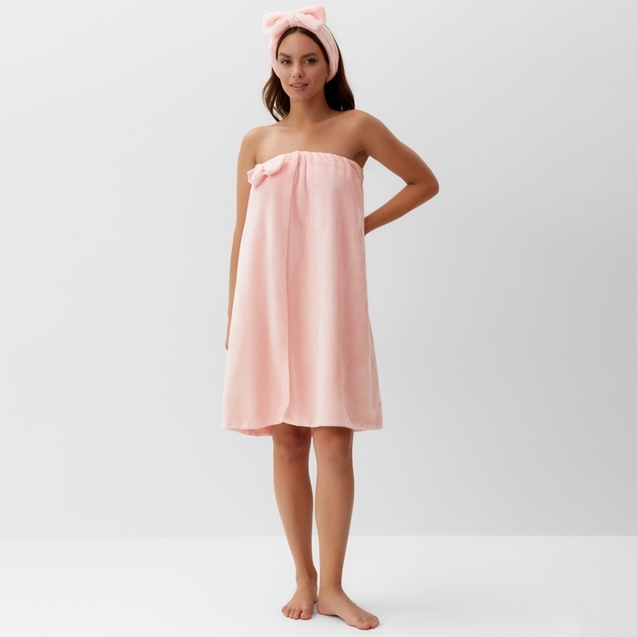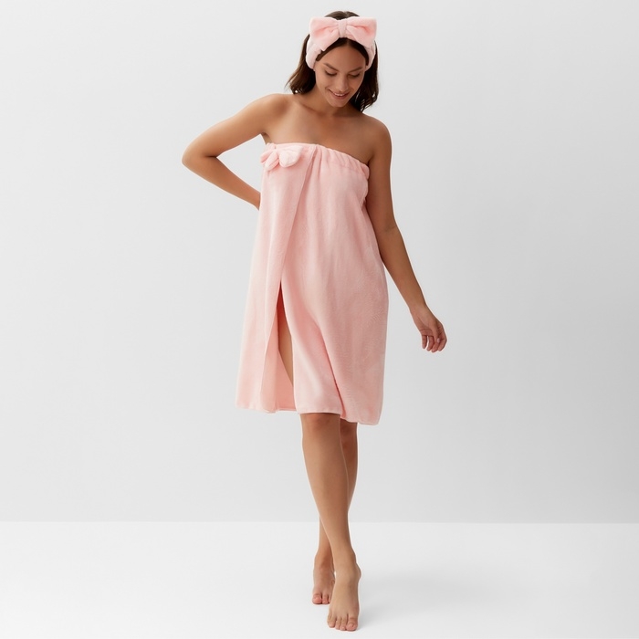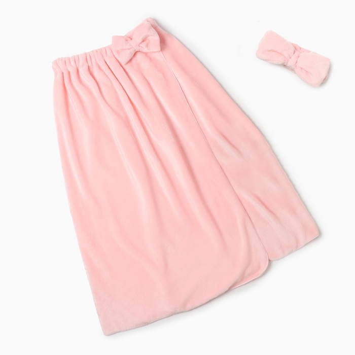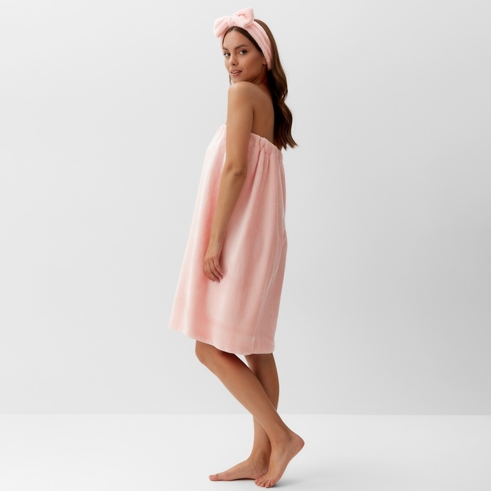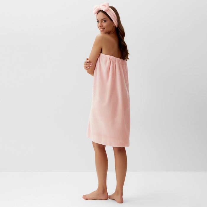 Набор для бани и ванной Этель "Бантик", цв. розовый, полотенце- парео 75*120 см+повязка