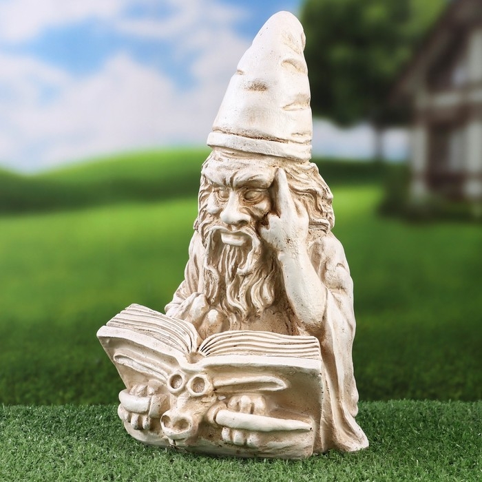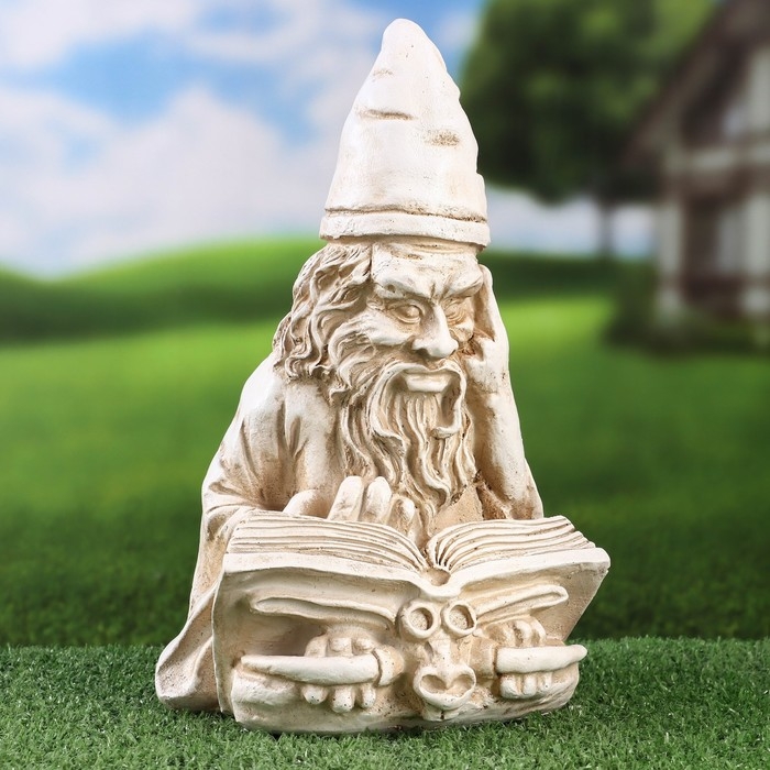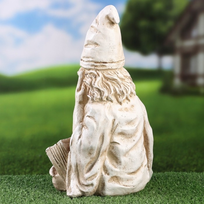 Садовая фигура "Умный гном" серый камень, 18х15х29см