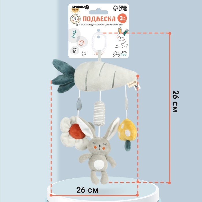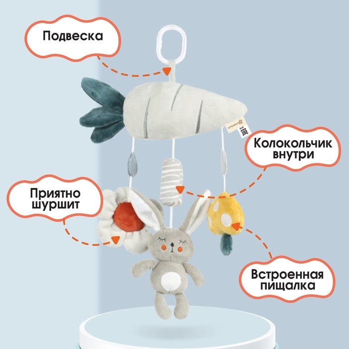 Подвеска - погремушка «Зайка Бонни», пищит, шуршит, на кроватку, коляску, Крошка Я
