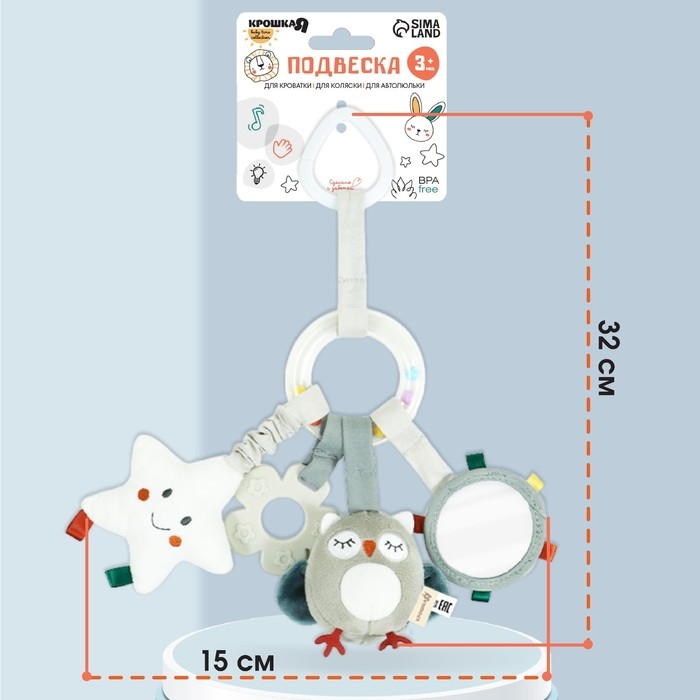 Подвеска - погремушка «Совушка», прорез., пищалка, шуршит, на кроватку, коляску, Крошка Я
