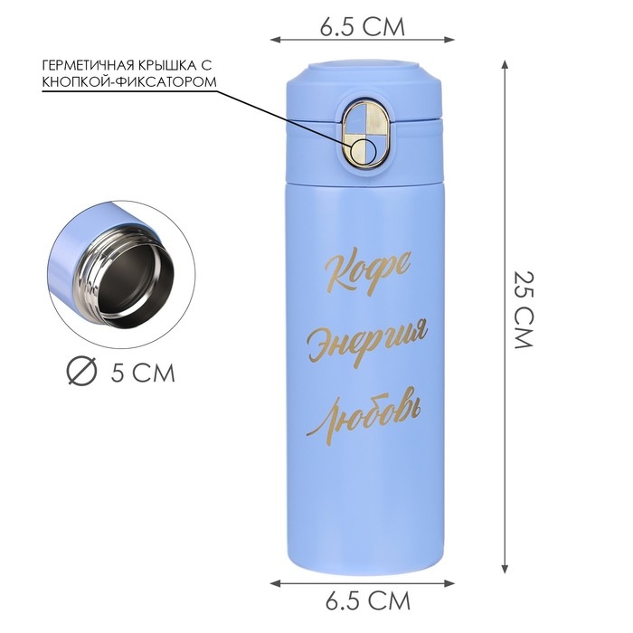 Термокружка, 420 мл, Simple "Кофе - энергия - любовь", сохраняет тепло до 8 ч